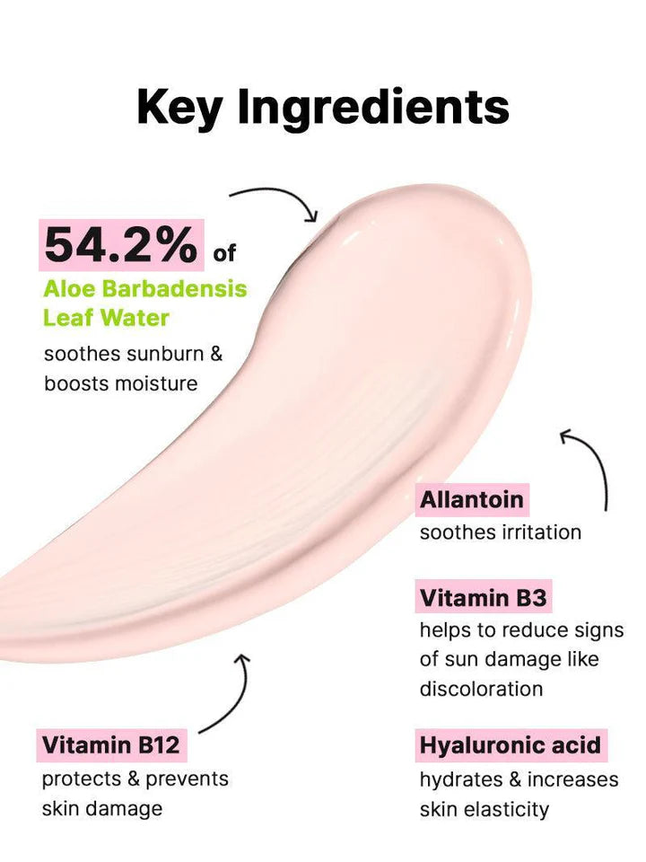 Aloe vera for soothing and calming the skin tone; Pink Tone Up Aqua Tone Up Sun Screen for skin tone-up effect